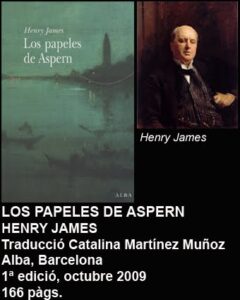 Aquest element destacat en tota la narrativa d’Henry James el trobem també aquí, a Los papeles de Aspern (1888), considerada una nouvelle –gènere en el qual l’escriptor excel·lí- magnífica; no pas més, però, que altres peces seves com ara Dins la gàbia (1898) o La bèstia en la jungla (1903), per citar només dos exemples. La que ara ens ocupa és una història amb una base argumental simple, però que a les mans de James esdevé un veritable estudi de la complexitat de les relacions humanes, una incursió decidida en el territori sovint inexpugnable dels sentiments.