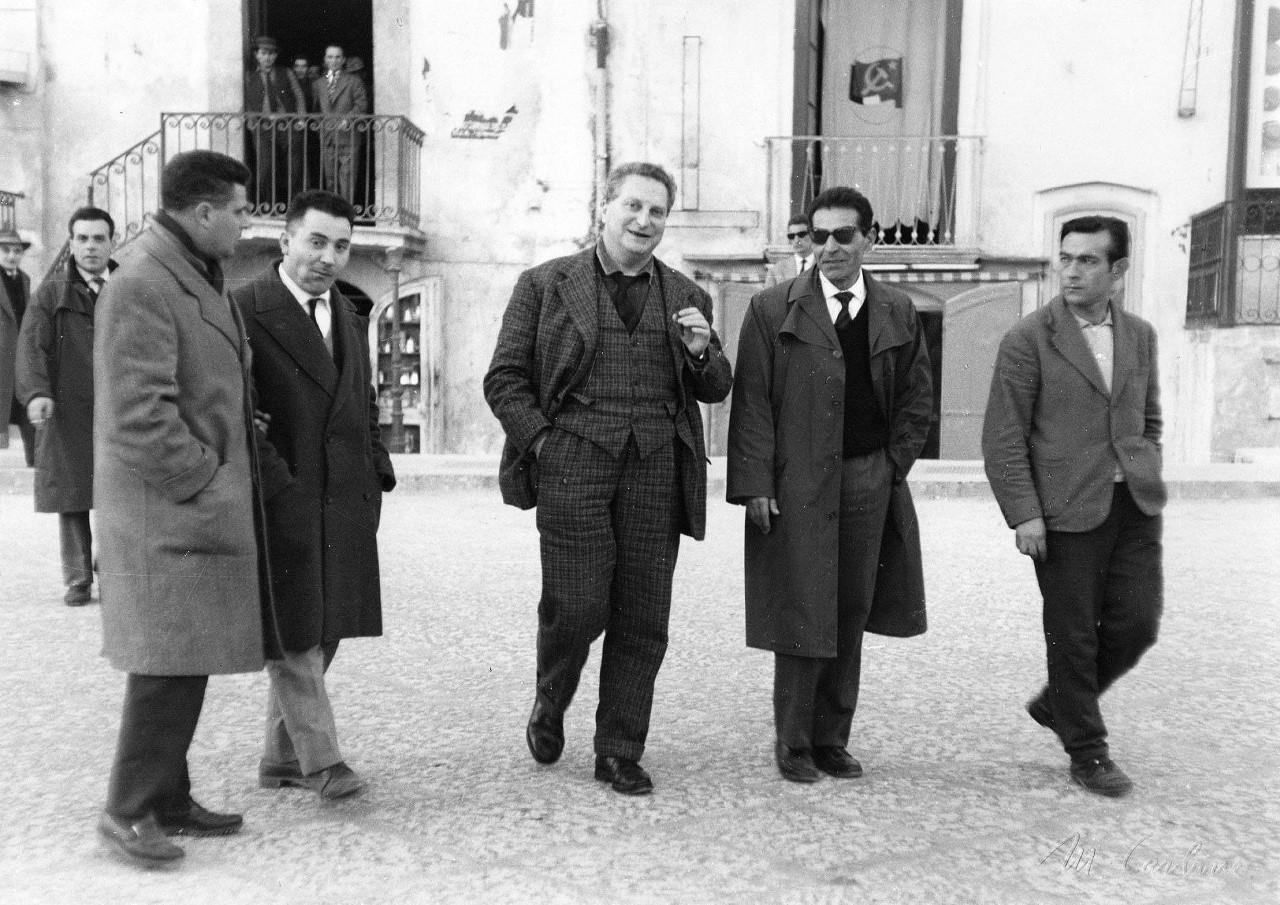 Carlo Levi al centre de la imatge, passejant per Èboli en una visita als anys 70.